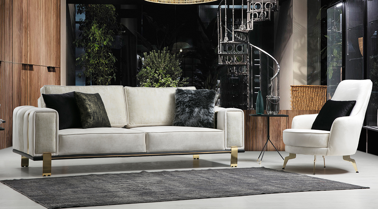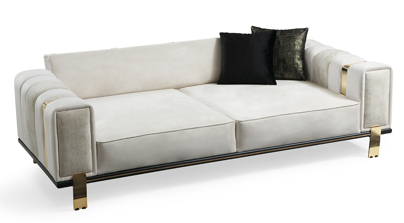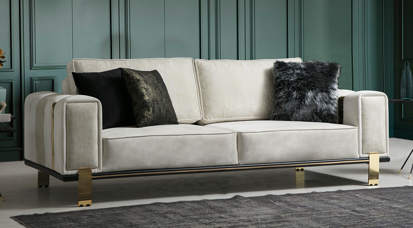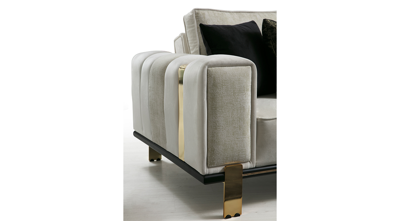 Krem ve antrasit renk, gold metal ayakları, rahat oturumu ve modern şık görünümü ile sizleri büyüleyen Titan Metal Ayaklı Yataklı Koltuk Takımı mobilyamevime.com ve mobilyamevime mağazalarında sizleri bekliyoruz