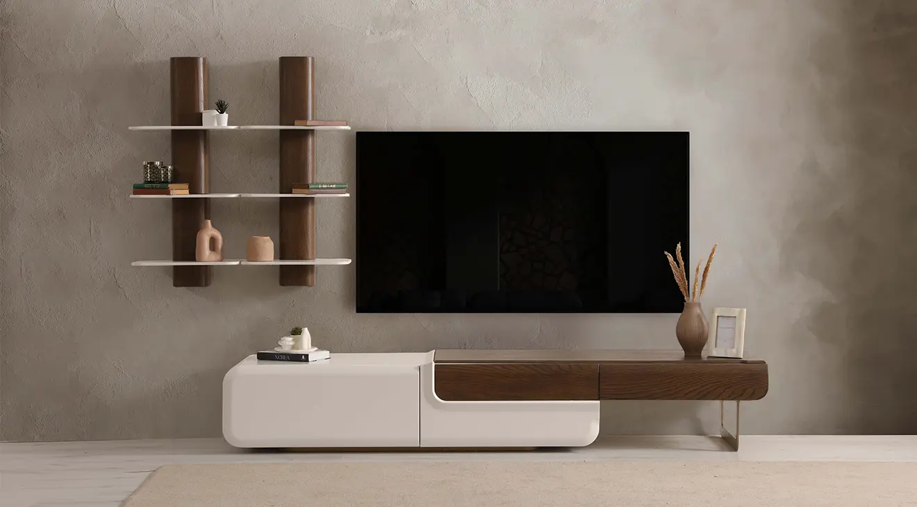 Aytaşı ve ceviz rengi, ceviz ayakları ve desen detayları ile modern tv ünitelerinden olan Tokyo Ceviz Tv Ünitesi mobilyamevime.com ve mobilyamevime mağazalarında sizlere sunuyoruz
