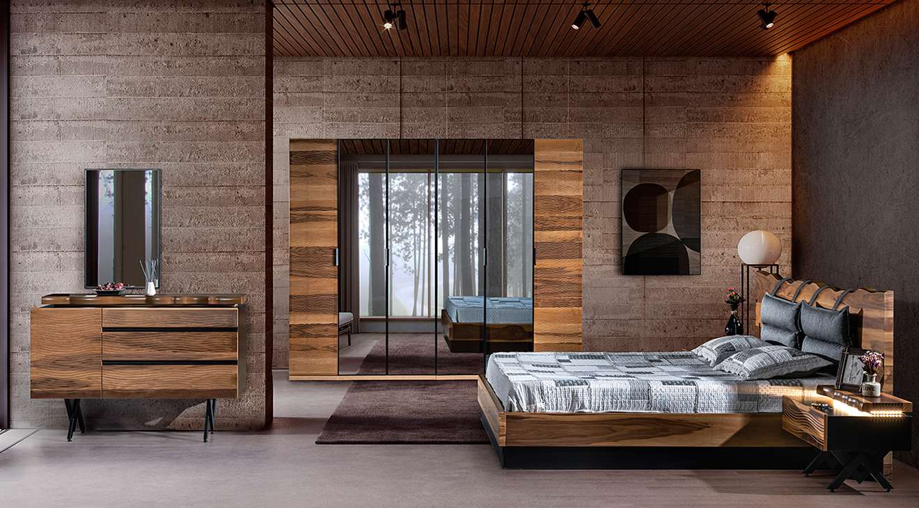 Yatak odanızdaki mobilyaların hangi malzemeden yapıldığı, soluduğunuz hava kalitesini belirler. Mobilyamevime koleksiyonlarında, E1 kalite standartlarında, kanserojen madde içermeyen ve sürdürülebilir kaynaklardan elde edilen ahşapları kullanıyoruz. Yatak odası modelleri tasarlarken fırınlanmış gürgen ve meşe gibi doğal materyalleri tercih ederek, odanızın doğal bir ekosistem gibi nefes almasını sağlıyoruz.