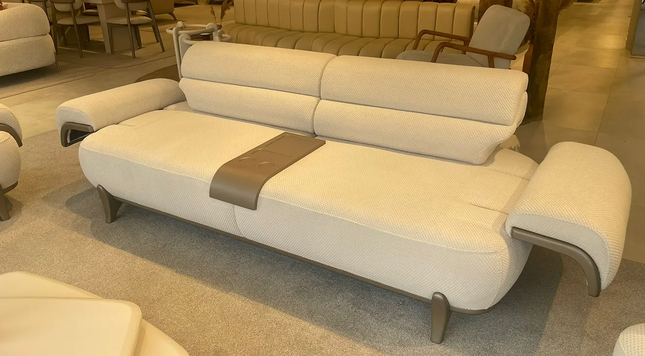 Vega Koltuk Takımı, yumuşak dokulu krem kumaşı ve modern hatlarıyla oturma alanınıza zarif ve konforlu bir karakter kazandırır. Geniş oturum yapısı ve ergonomik sırt formu, günlük kullanımda olduğu kadar misafir ağırlarken de maksimum rahatlık sunar. Kol ve orta bölümde kullanılabilen fonksiyonel deri görünümlü sehpa detayı, içecek ve küçük eşyalar için pratik bir alan sağlar. Kolayca açılarak geniş bir yatak alanına dönüşen mekanizması, ekstra konaklama imkânı sunarken yüksek ayak yapısı temizlikte büyük kolaylık sağlar. Vega Koltuk Takımı, İnegöl mobilya kalitesiyle uzun yıllar ilk günkü formunu koruyarak şık ve kullanışlı bir yaşam alanı oluşturur.