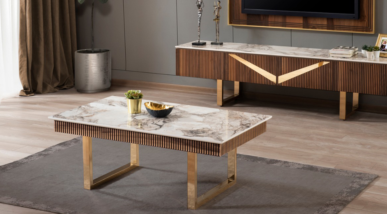Venüs Mermer Desenli Orta Sehpa; Üst tablası mermer desenli, gold rengi ile modern tasarıma sahip olan Orta Sehpa Mobilyamevime de sizlere sunuyoruz