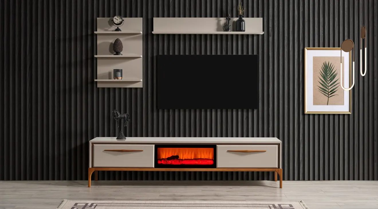 Viola Modern TV Ünitesi, üst yüzeyleri MDF hareli meşe ve ön yüzeyleri MDF dolunay rengi olan bir tasarıma sahiptir. Altın metal ayakları ve aytaşı rengi detaylarıyla modern bir hava katıyor. Mobilyamevime'de sizleri bekliyor.