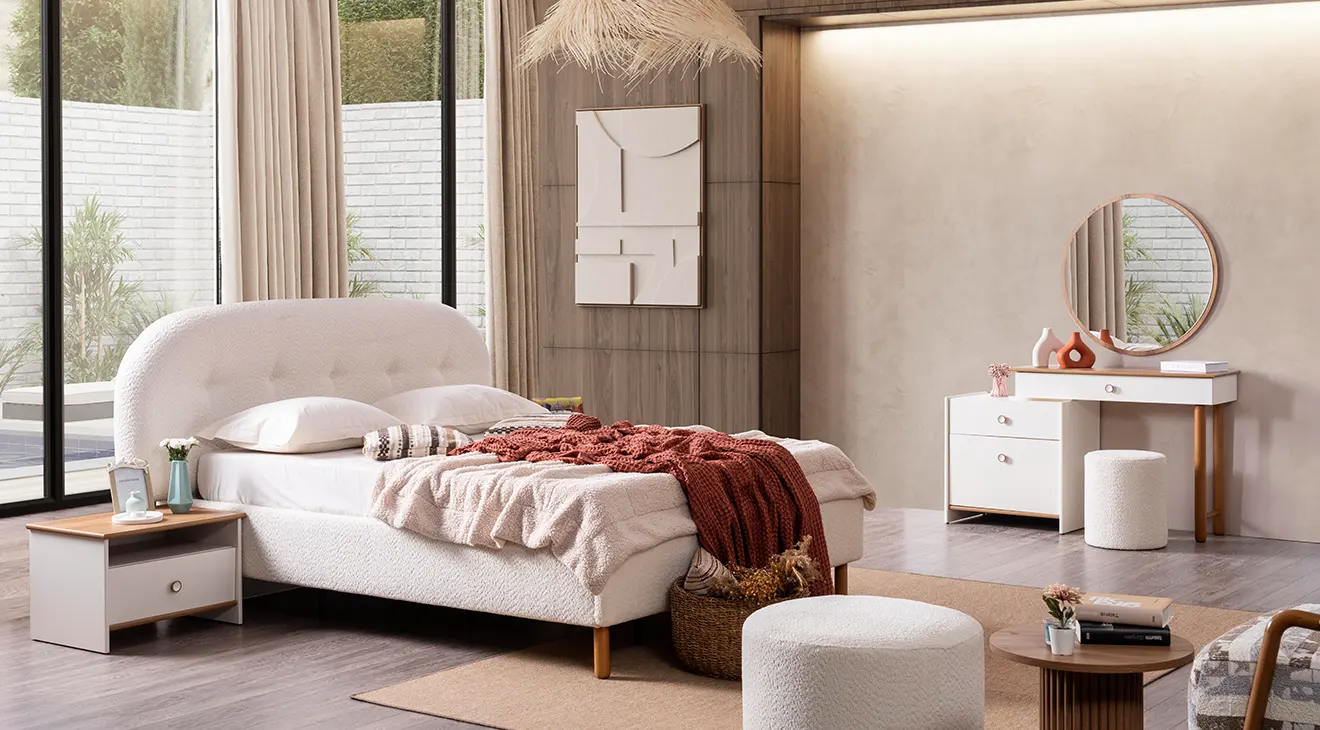 Modern dokunuşlarla tasarlanan Virjin 6 Kapaklı Yatak Odası Takımı, sade ve zarif yapısıyla dikkat çeker. Fonksiyonel gardırop, geniş bazalı yatak ve estetik makyaj masası ile konforu ve şıklığı bir arada sunar. İnegöl mobilyasının kalitesini yatak odanıza taşıyın.