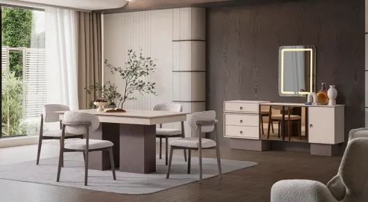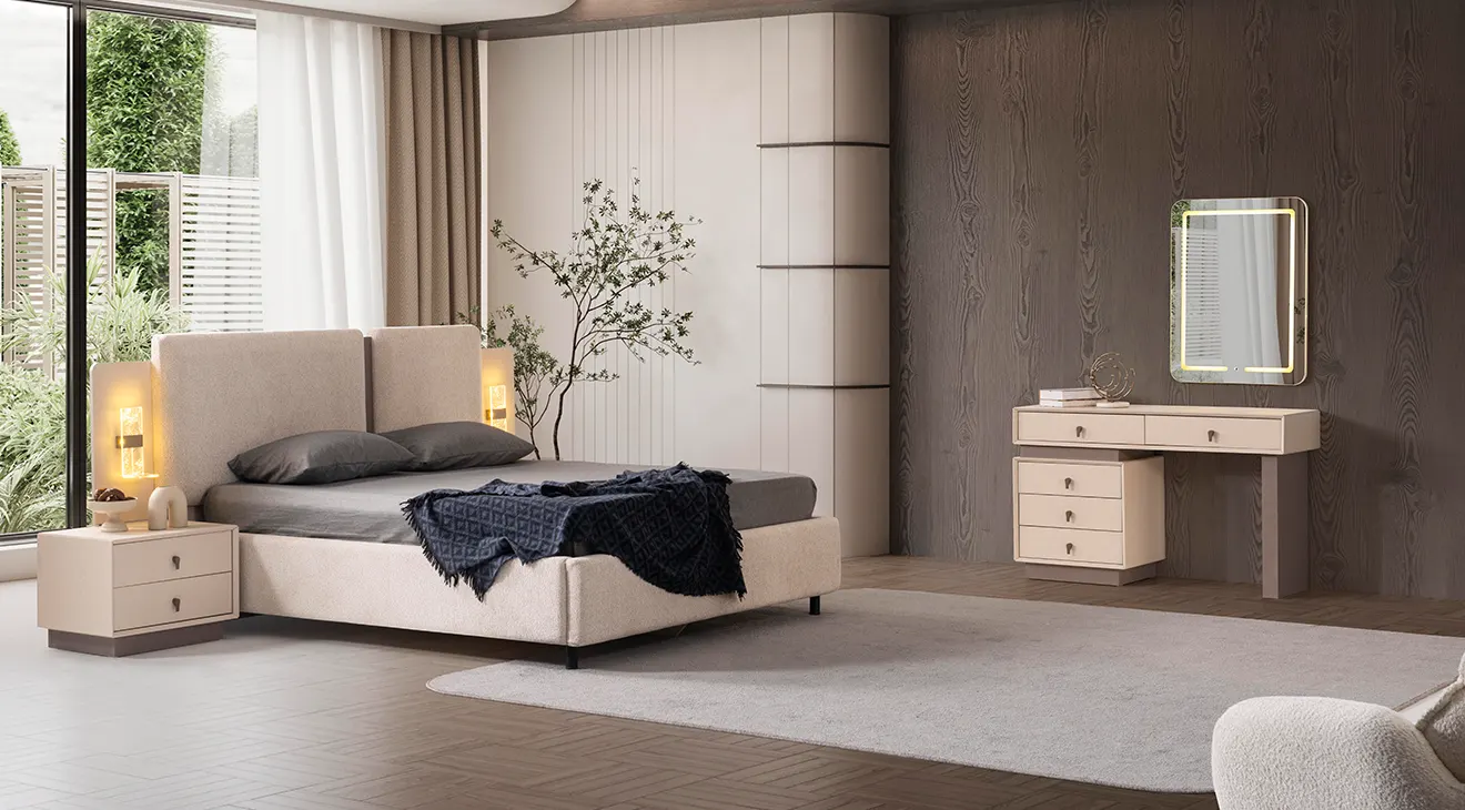 Yakut Düğün Paketi; modern yatak odası, yemek odası ve koltuk takımını uyumlu bir konseptte sunar. Açık tonlar, dayanıklı ve kolay temizlenen yüzeyler; yeni evlere şık, uzun ömürlü çözüm.