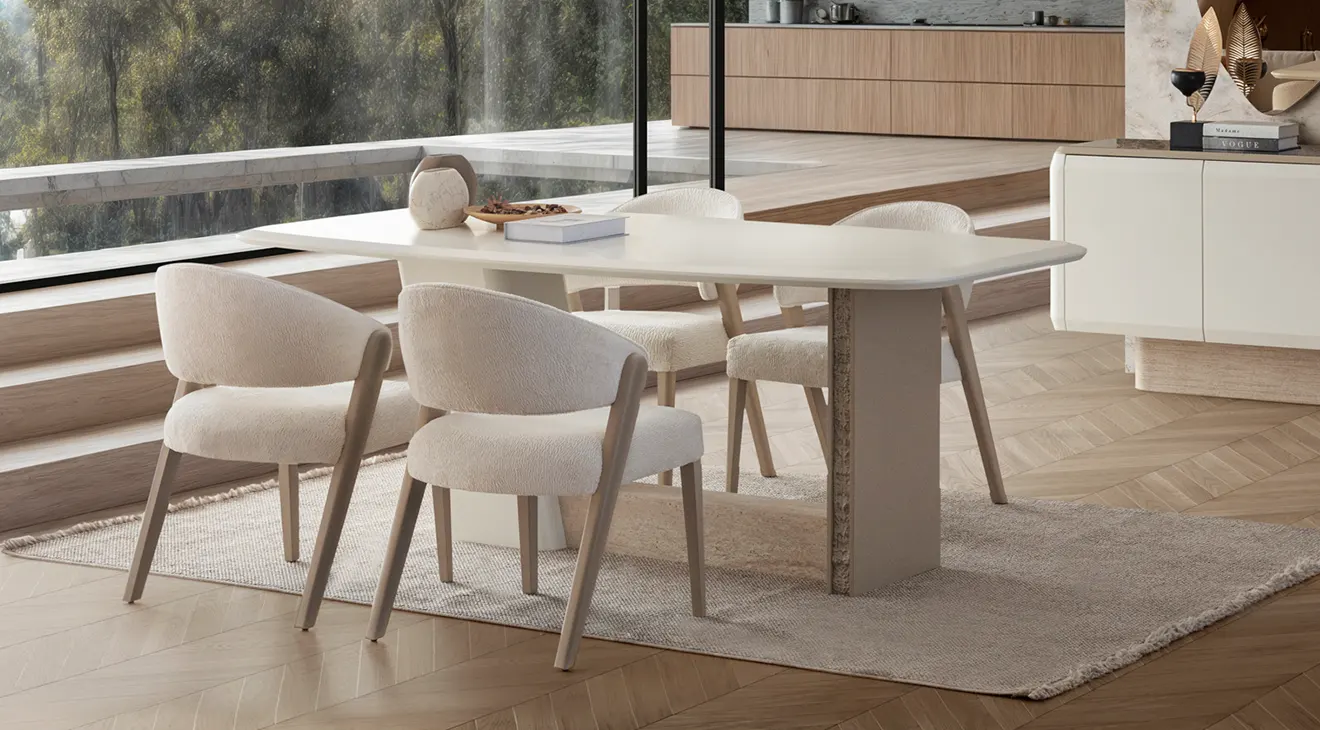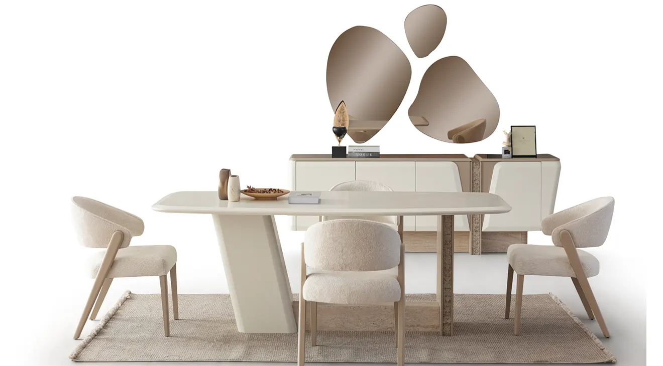 Zen Aytaşı Modern Yemek Odası Takımı, zarif hatları ve doğal tonlarıyla yemek alanınıza ferahlık katıyor. Aytaşı rengindeki detaylar, modern çizgilerle buluşarak zamansız bir şıklık sunuyor. Hem estetik hem fonksiyonel yapısıyla kalabalık sofralara şıklık kazandırır.