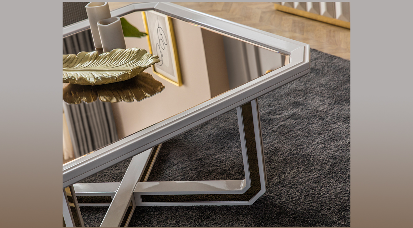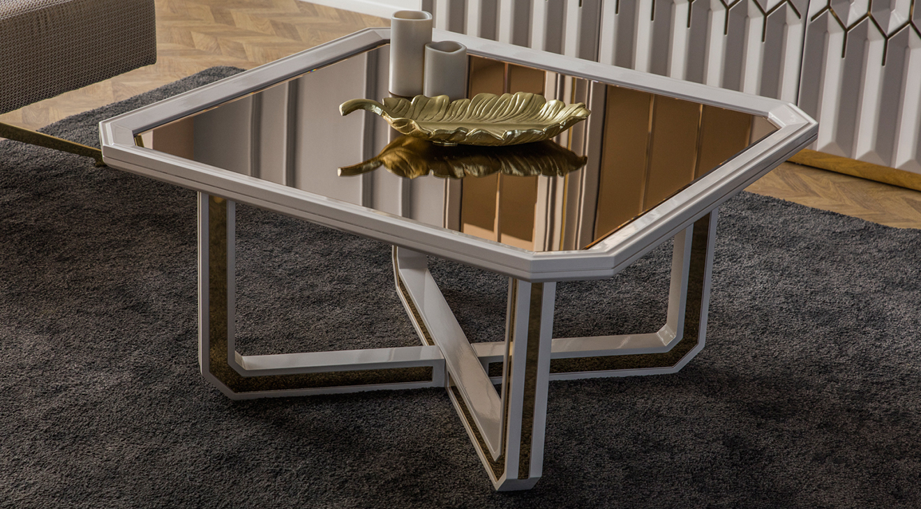 Gol ve krem rengi, aynalı tavanı ile modern hava yaratan Zümra Krem Orta Sehpa mobilyamevime.com ve mobilyamevime mağazalarında sizlere sunuyoruz