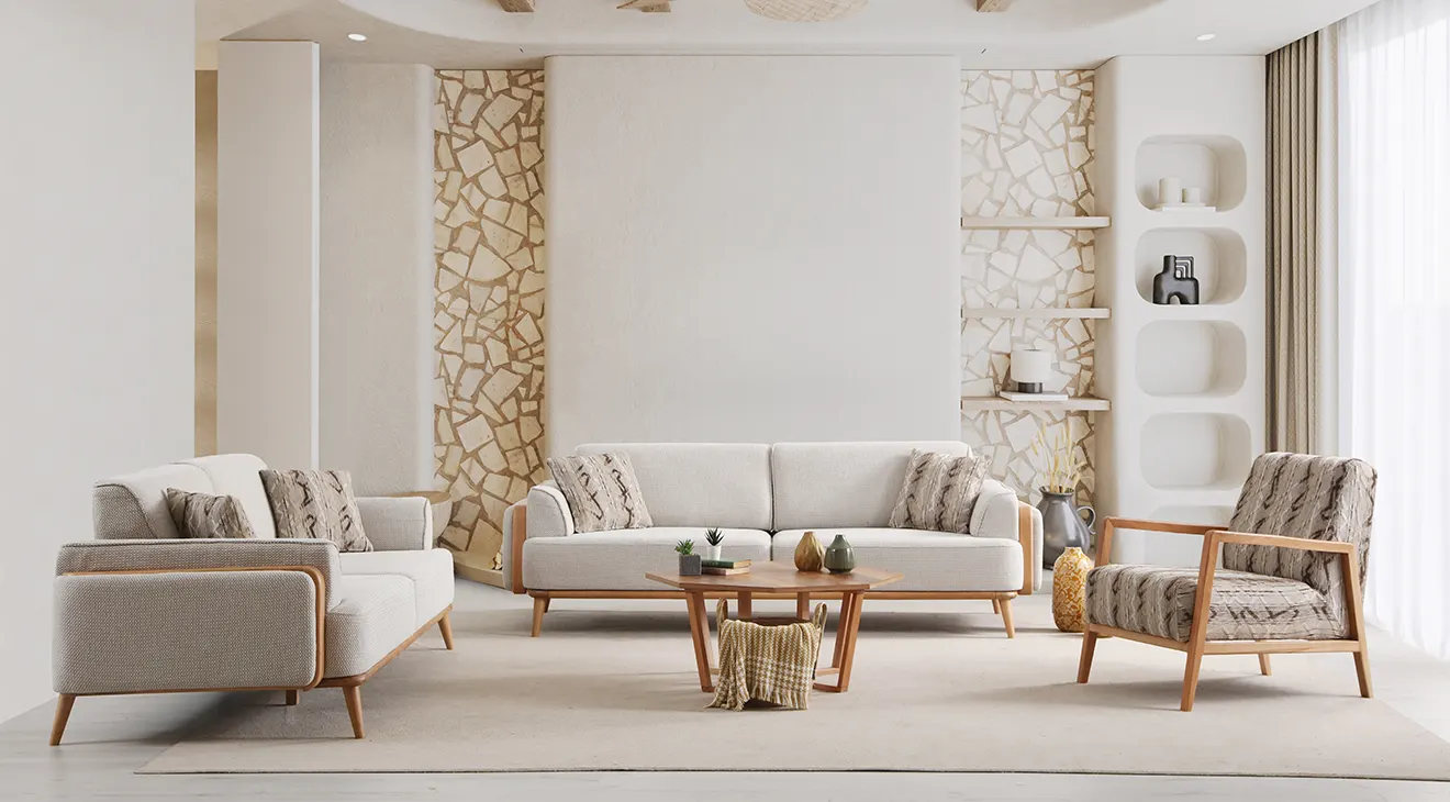 Zümre Ahşap Ayaklı Bohem Koltuk Takımı, doğal ahşap detayları ve bohem tarzıyla yaşam alanınıza sıcaklık ve zarafet katıyor. Konforlu yapısıyla öne çıkan bu takım, hem modern hem de geleneksel tarzı sevenler için mükemmel bir seçenek. Mobilyamevime’de şıklığın ve rahatlığın tadını çıkarın!